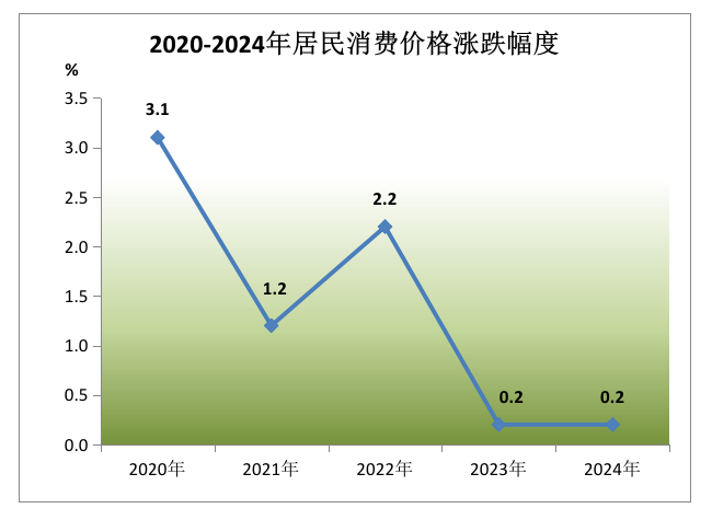 ? ? 全年居民消費(fèi)價(jià)格比上年上漲0.2%。分類別看,食品煙酒類價(jià)格下降0.2%,衣著類價(jià)格上漲1.8%,居住類價(jià)格上漲0.1%,生活用品及服務(wù)類價(jià)格上漲3.4%,交通通信類價(jià)格下降2.7%,教育文化娛樂(lè)類價(jià)格上漲3.5%,醫(yī)療保健類價(jià)格上漲0.3%,其他用品及服務(wù)類價(jià)格上漲1.6%。工業(yè)生產(chǎn)者出廠價(jià)格下降1.6%,其中輕工業(yè)下降0.7%,重工業(yè)下降2%。