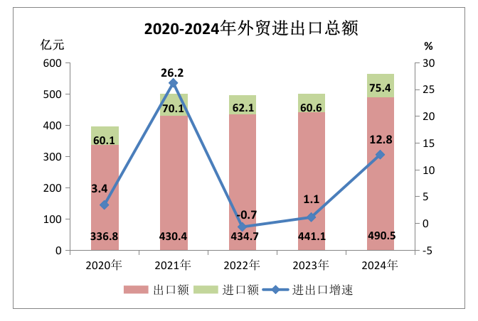 全年外貿(mào)進(jìn)出口總額565.9億元,比上年增長(zhǎng)12.8%。其中,進(jìn)口75.4億元,增長(zhǎng)21.5%;出口總額490.5億元,增長(zhǎng)11.6%。實(shí)際利用外資2.95億元,增長(zhǎng)55.6%。