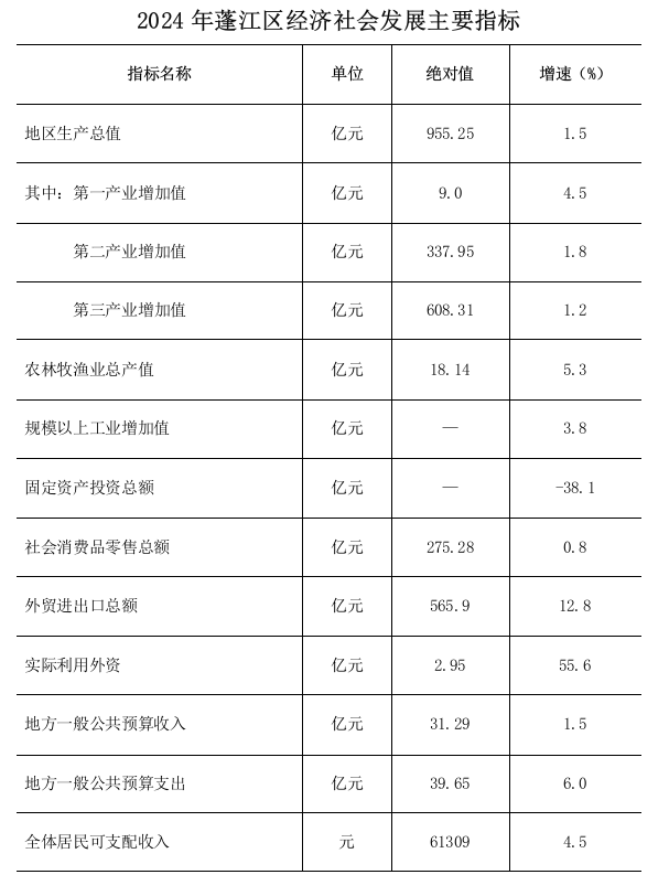 2024年江門(mén)市蓬江區(qū)人民政府國(guó)民經(jīng)濟(jì)和社會(huì)發(fā)展統(tǒng)計(jì)公報(bào)(2025年更新)