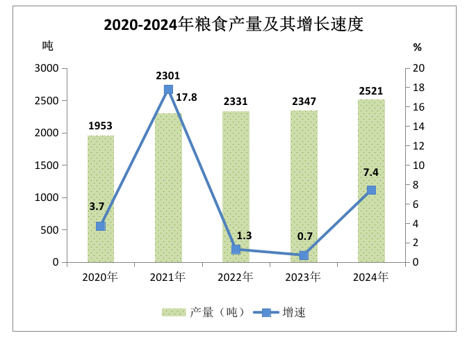 全年糧食產(chǎn)量2521噸,比上年增長(zhǎng)7.4%;甘蔗產(chǎn)量488噸,下降12.4%;油料產(chǎn)量310噸,下降2.8%;蔬菜產(chǎn)量7.92萬(wàn)噸,下降1.7%;水果產(chǎn)量3259噸,下降4.9%。