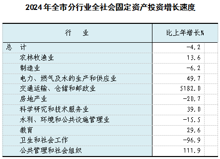 全年全市固定資產(chǎn)投資(不含跨市、農(nóng)戶)比上年下降4.2%。