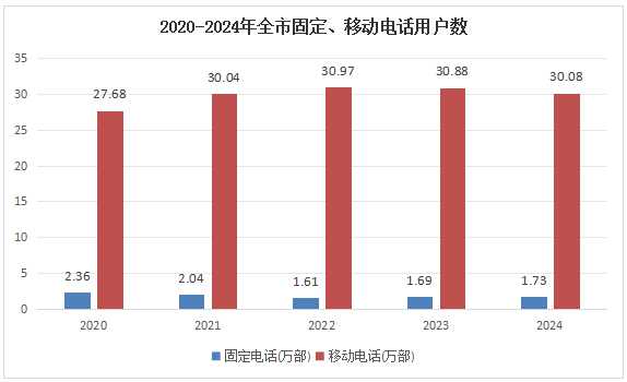 全年全市完成郵電業(yè)務(wù)收入24975萬元。其中,郵政業(yè)務(wù)收入4858萬元,電信業(yè)務(wù)收入20117萬元。年末全市固定電話1.73萬部,移動電話用戶30.08萬戶,互聯(lián)網(wǎng)寬帶接入用戶12.1萬戶,固定電話和移動電話普及率分別為7部/百人和119部/百人。