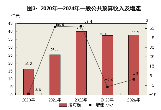 全年全縣財政總收入89.0億元,下降6.5%。其中,一般公共預算收入完成37.9億元,增長1.3%;稅收收入21.3億元,下降11.2%。其中,增值稅8.1億元,下降13.6%;企業(yè)所得稅3.8億元,下降20.2%;個人所得稅0.2億元,下降35.6%;資源稅4.9億元,增長7.8%;城市維護建設稅1.4億元,下降11.7%。一般公共預算支出59.2億元,增長6.1%。其中,公共安全支出1.3億元,增長10.3%;教育支出5.1億元,增長2.2%;文化旅游體育與傳媒支出1.0億元,增長58.7%;社會保障和就業(yè)支出6.4億元,增長8.1%;農(nóng)林水支出9.7億元,增長40.8%;交通運輸支出4.3,增長1.6%。