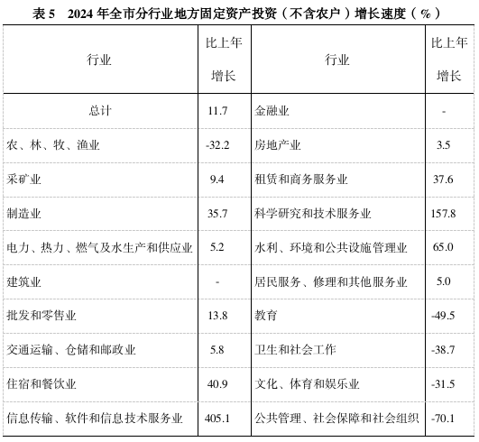 全年全社會(huì)固定資產(chǎn)投資比上年增長(zhǎng)11.7%。地方固定資產(chǎn)投資(不含農(nóng)戶)中,第一產(chǎn)業(yè)投資比上年下降24.1%;第二產(chǎn)業(yè)投資增長(zhǎng)15.0%;第三產(chǎn)業(yè)投資增長(zhǎng)10.9%。民間固定資產(chǎn)投資增長(zhǎng)14.2%。