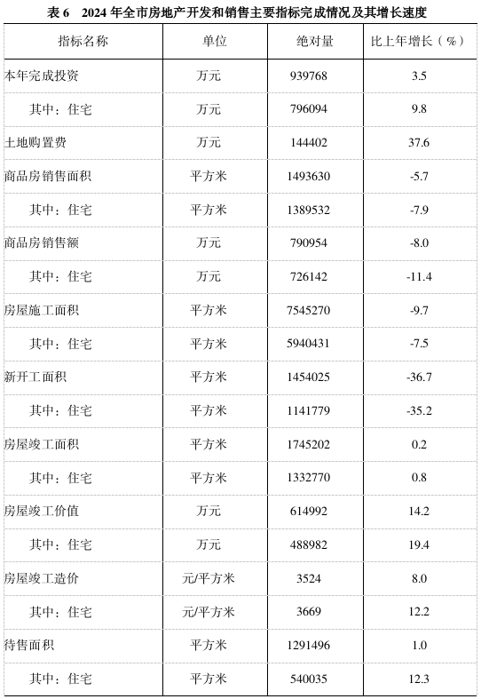 全年完成房地產(chǎn)開發(fā)投資93.98億元,比上年增長(zhǎng)3.5%。其中住宅投資79.61億元,增長(zhǎng)9.8%。商品房銷售面積149.36萬(wàn)平方米,下降5.7%,商品房住宅待售面積54.0萬(wàn)平方米,增長(zhǎng)12.3%。