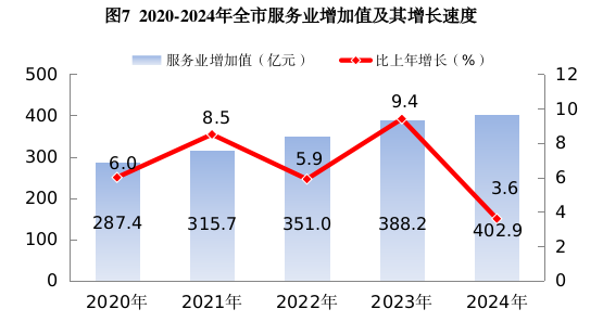 全年全市實(shí)現(xiàn)服務(wù)業(yè)增加值402.88億元,比上年增長(zhǎng)3.6%。