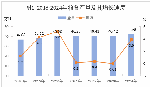 | 糧食產(chǎn)量 | 萬(wàn)噸 | 41.98 | ? 3.9 |