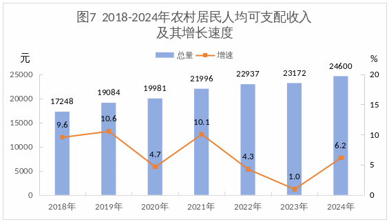 全年農(nóng)村居民人均可支配收入24600元,比上年增長(zhǎng)6.2%。
