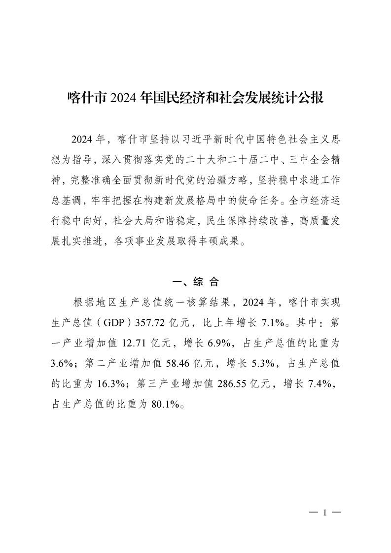 2024年喀什地區(qū)喀什市人民政府國民經(jīng)濟(jì)和社會發(fā)展統(tǒng)計(jì)公報(2025年更新)