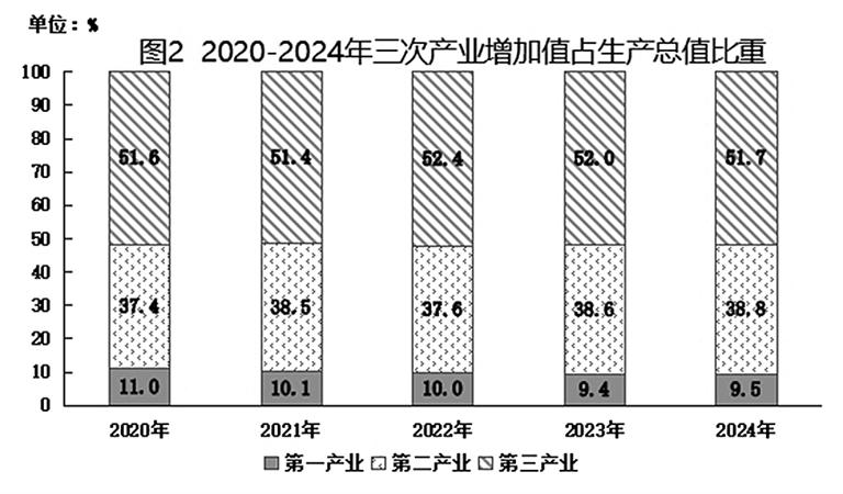 2.地區(qū)生產(chǎn)總值、三次產(chǎn)業(yè)及相關(guān)行業(yè)增加值和人均生產(chǎn)總值絕對數(shù)按現(xiàn)價(jià)計(jì)算,增長速度按不變價(jià)格計(jì)算。根據(jù)第五次全國經(jīng)濟(jì)普查結(jié)果,并同步實(shí)施城鎮(zhèn)居民自有住房服務(wù)核算方法改革,對地區(qū)生產(chǎn)總值、三次產(chǎn)業(yè)及相關(guān)行業(yè)增加值等歷史數(shù)據(jù)(包括圖1、圖2、圖5)進(jìn)行了修訂。