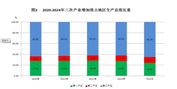 全年實(shí)現(xiàn)生產(chǎn)總值(GDP)51.2億元,按可比價(jià)格計(jì)算同比增長(zhǎng)7.2%。其中,第一產(chǎn)業(yè)增加值12.3億元,增長(zhǎng)6.0%;第二產(chǎn)業(yè)增加值5.5億元,增長(zhǎng)7.4%;第三產(chǎn)業(yè)增加值33.4億元,增長(zhǎng)7.6%。第一產(chǎn)業(yè)增加值占地區(qū)生產(chǎn)總值比重為24.1%,第二產(chǎn)業(yè)增加值比重為10.7%,第三產(chǎn)業(yè)增加值比重為65.2%。按常住人口計(jì)算,全年人均地區(qū)生產(chǎn)總值21428元,較上年增加1138元。