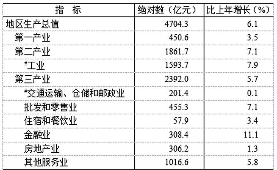 全年批發(fā)和零售業(yè)增加值455.3億元,比上年增長(zhǎng)7.1%;交通運(yùn)輸、倉(cāng)儲(chǔ)和郵政業(yè)增加值201.4億元,增長(zhǎng)0.1%;住宿和餐飲業(yè)增加值57.9億元,增長(zhǎng)3.4%;金融業(yè)增加值308.4億元,增長(zhǎng)11.1%;房地產(chǎn)業(yè)增加值306.2億元,增長(zhǎng)1.3%;信息傳輸、軟件和信息技術(shù)服務(wù)業(yè)增加值85.1億元,增長(zhǎng)10.7%。全年規(guī)模以上服務(wù)業(yè)企業(yè)營(yíng)業(yè)收入比上年增長(zhǎng)4.4%,利潤(rùn)總額增長(zhǎng)36.6%。