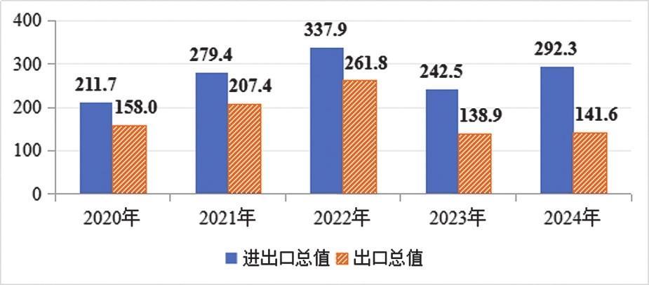 進(jìn)出口總值完成292.3億元,比上年增長(zhǎng)20.4%。其中,出口總值141.6億元,增長(zhǎng)2.3%;進(jìn)口總值150.8億元,增長(zhǎng)44.3%。