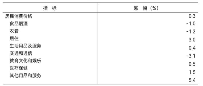 全年居民消費(fèi)價(jià)格同比上漲0.3%,八大類商品有五類上漲,其中,其他用品和服務(wù)類漲幅最大,同比上漲5.4%。工業(yè)生產(chǎn)者出廠價(jià)格下降6.7%,其中,煤炭開采和洗選業(yè)出廠價(jià)格下降11.5%;工業(yè)生產(chǎn)者購進(jìn)價(jià)格下降5.0%。