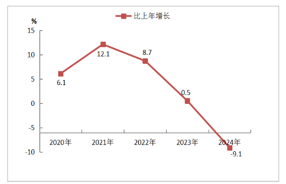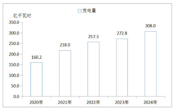 圖6? 2020年-2024年全市規(guī)模以上工業(yè)企業(yè)發(fā)電量