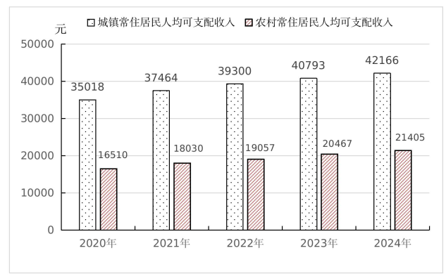 圖11? ?2020年-2024年全市城鄉(xiāng)居民人均可支配收入?