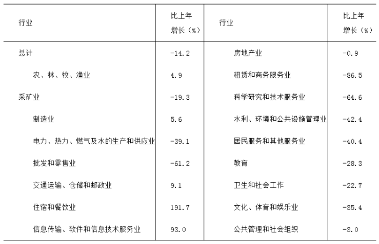 分產(chǎn)業(yè)看,第一產(chǎn)業(yè)投資6.0億元,下降31.0%。第二產(chǎn)業(yè)投資97.7億元,下降21.2%,其中,工業(yè)投資下降21.1%,工業(yè)技改投資下降27.8%;制造業(yè)投資增長5.6%;煤炭工業(yè)投資下降13.4%,非煤工業(yè)投資下降24.9%。第三產(chǎn)業(yè)投資116.4億元,下降6.0%,其中,基礎(chǔ)設(shè)施投資下降15.2%。??
