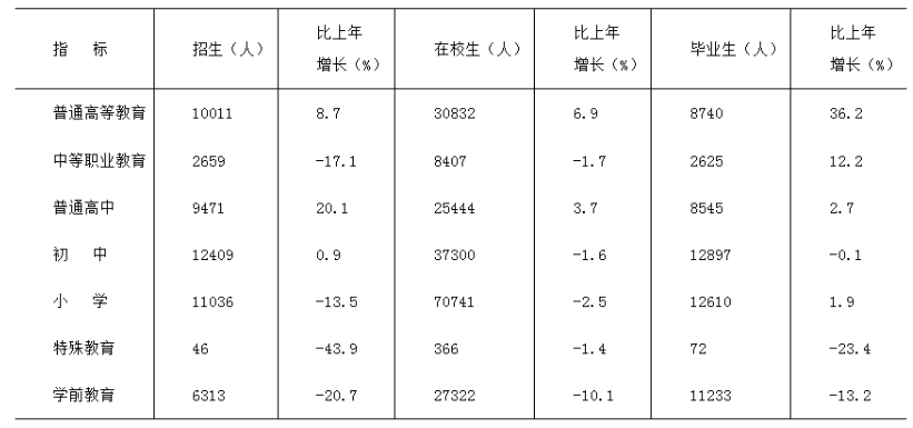 年末全市共有幼兒園356所,小學(xué)174所,初中62所,普通高中16所,中等職業(yè)學(xué)校11所,普通、職業(yè)高等學(xué)校3所,成人高等學(xué)校1所。