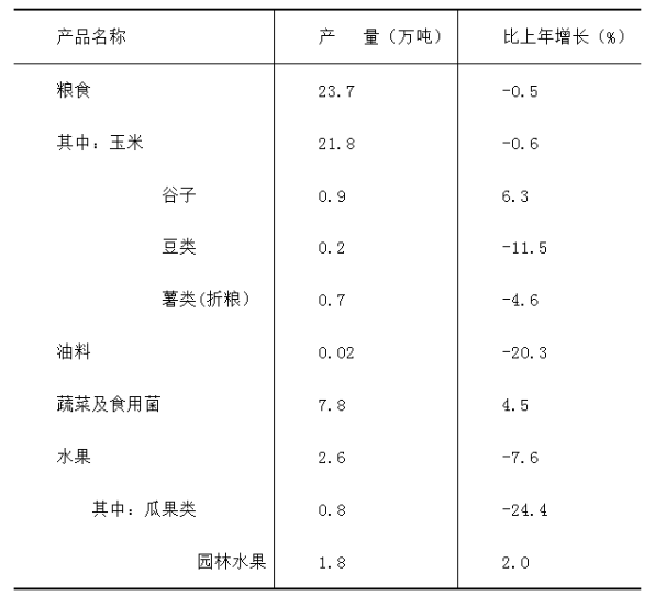 全年糧食總產(chǎn)量23.7萬噸,下降0.5%。
