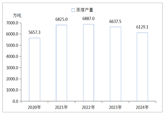 圖5? 2020年-2024年全市原煤產(chǎn)量