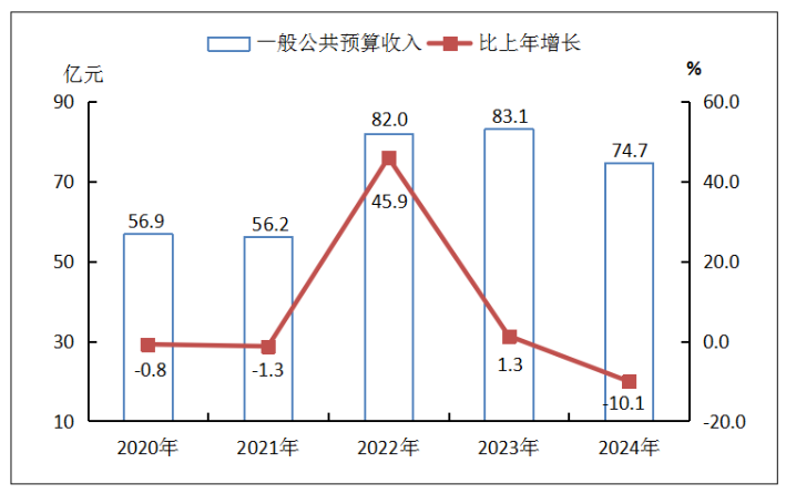 全年一般公共預(yù)算收入完成74.7億元,下降10.1%。稅收收入完成52.1億元,下降13.8%,其中,國內(nèi)增值稅、企業(yè)所得稅、個(gè)人所得稅、資源稅、城市維護(hù)建設(shè)稅和契稅共計(jì)完成稅收42.8億元,下降16.0%。