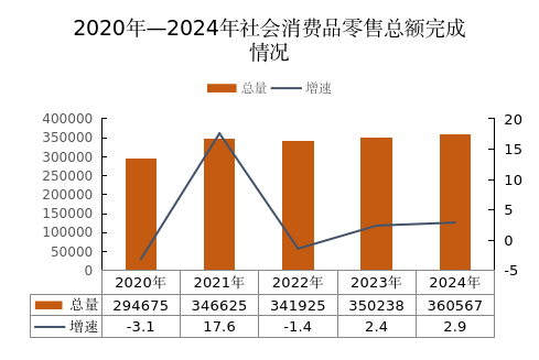 2024年,全年社會消費品零售總額360567萬元,增長2.9%。其中,限額以上社會消費品零售總額73292萬元,增長3.7%資料下載_資料共享_工程資料