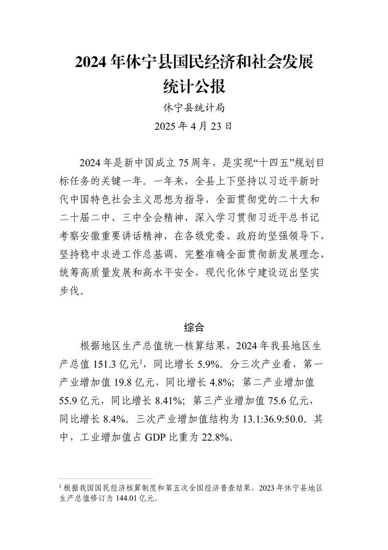 2024年黃山市休寧縣人民政府國民經(jīng)濟(jì)和社會(huì)發(fā)展統(tǒng)計(jì)公報(bào)(2025年更新)