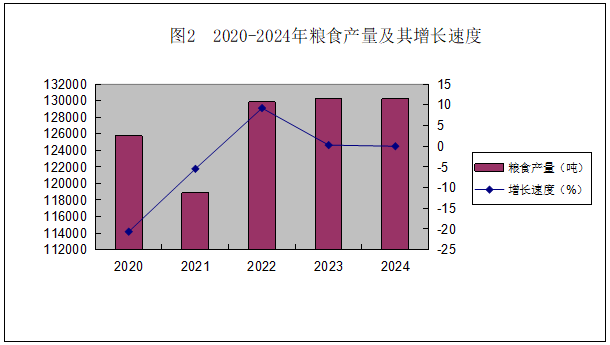 2024年糧食產(chǎn)量130208.01噸,增長0.01%,其中:谷物產(chǎn)量93095.67噸,同比增長6.3%;豆類產(chǎn)量11043.37噸,同比降低15.47%;薯類產(chǎn)量26068.97噸,同比降低11.79%。免費(fèi)下載_資料下載_資料共享
