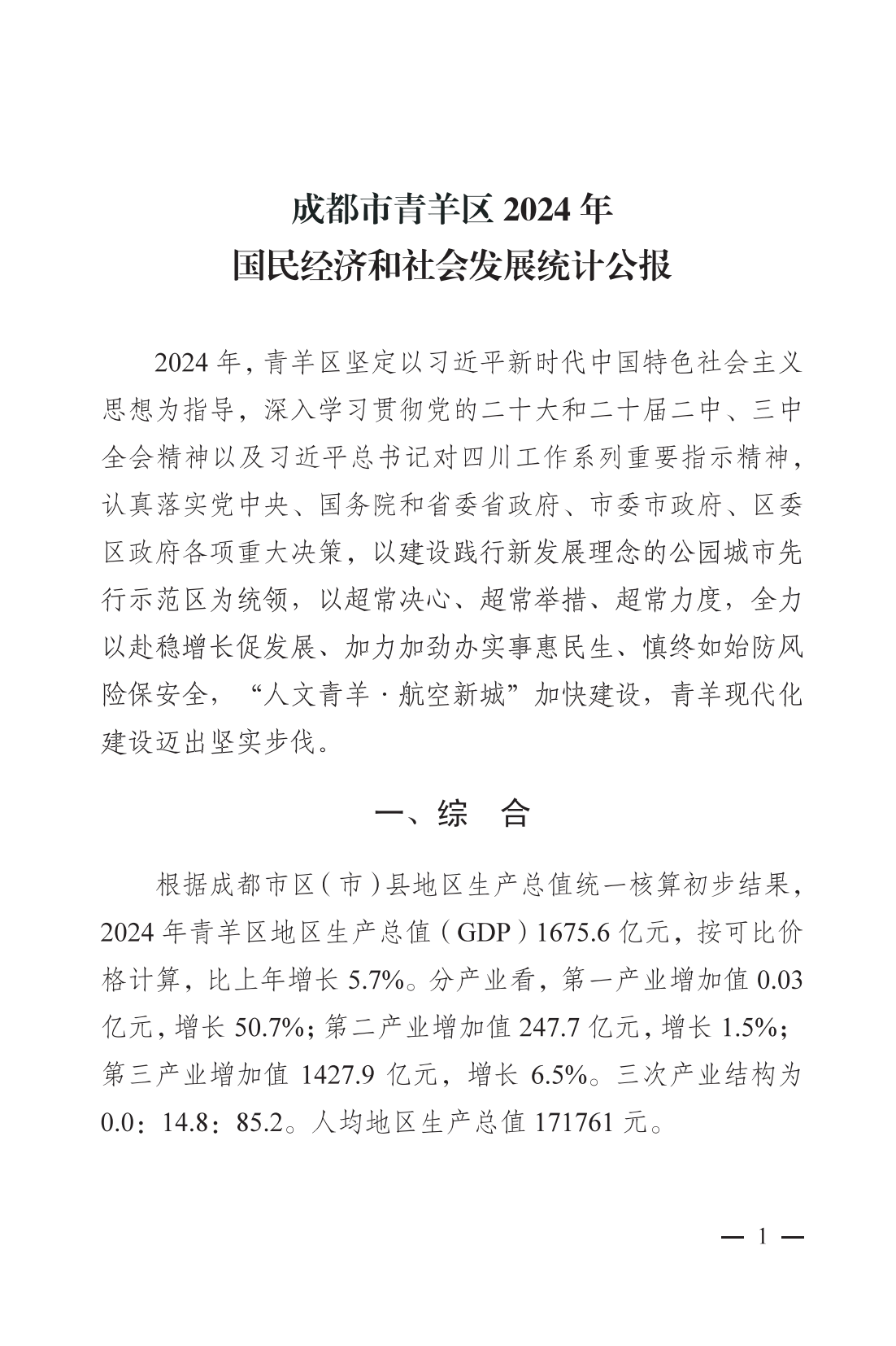 2024年成都市青羊區(qū)人民政府國民經濟和社會發(fā)展統(tǒng)計公報(2025年更新)