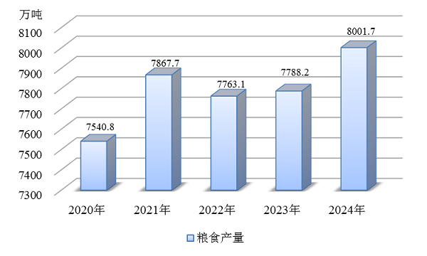 糧食作物。2024年糧食產量8001.7萬噸,并連續(xù)15年穩(wěn)居全國各?。ㄗ灾螀^(qū)、直轄市)首位。其中,水稻、玉米、大豆分別為2471.6萬噸、4584.9萬噸、905.0萬噸。全省糧食播種面積1475.4萬公頃。其中,水稻、玉米、大豆分別為330.5萬公頃、664.2萬公頃、468.5萬公頃。