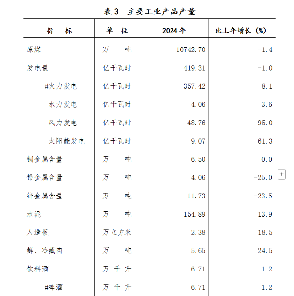 [5]主要工業(yè)產(chǎn)品產(chǎn)量中,除原煤產(chǎn)量、發(fā)電量為全口徑數(shù)據(jù),其余為規(guī)模以上工業(yè)企業(yè)口徑。