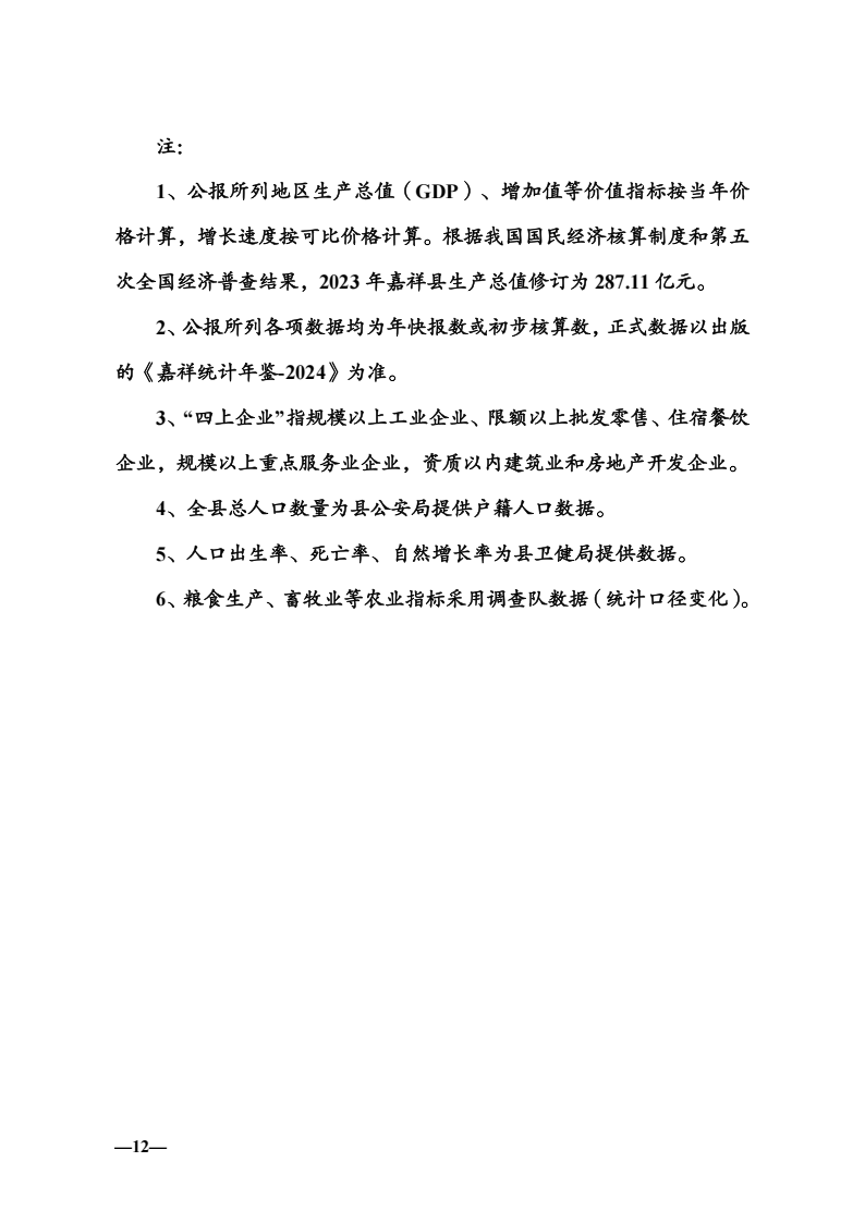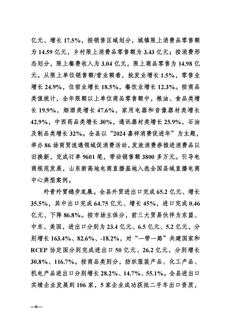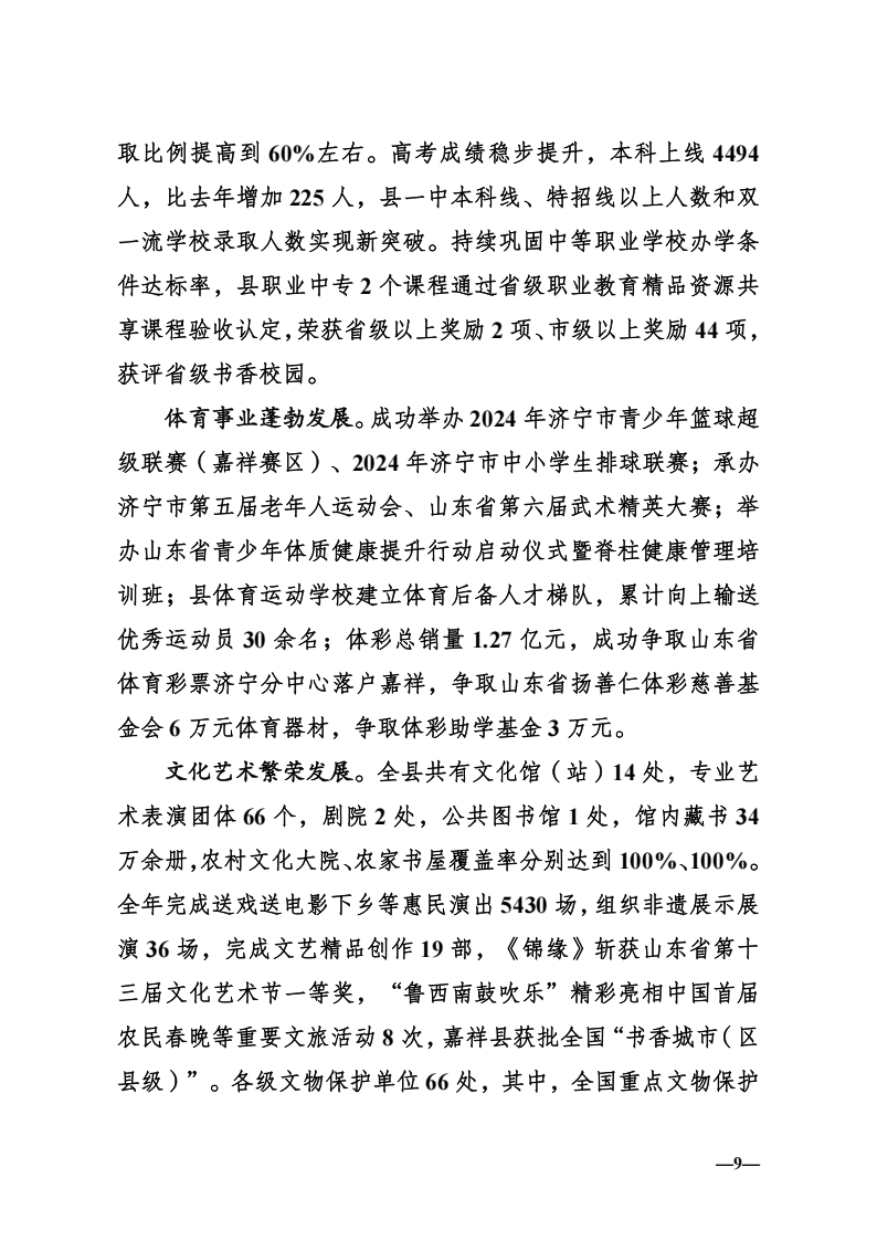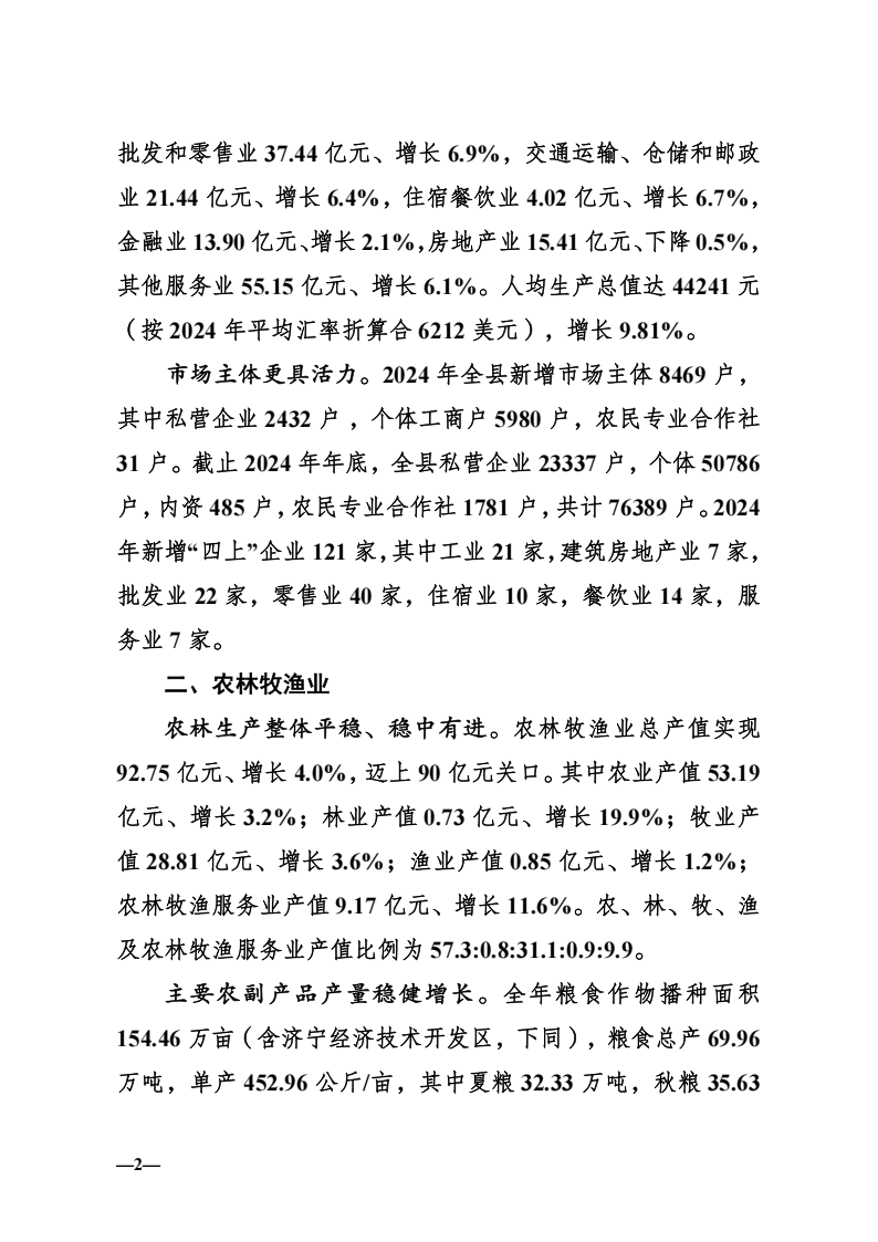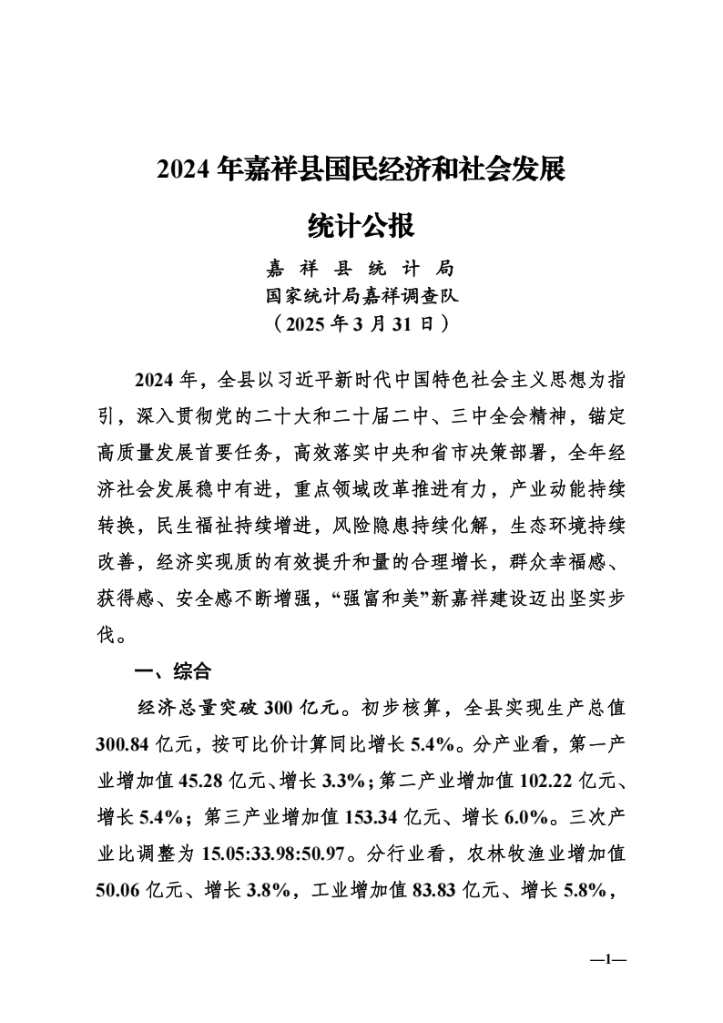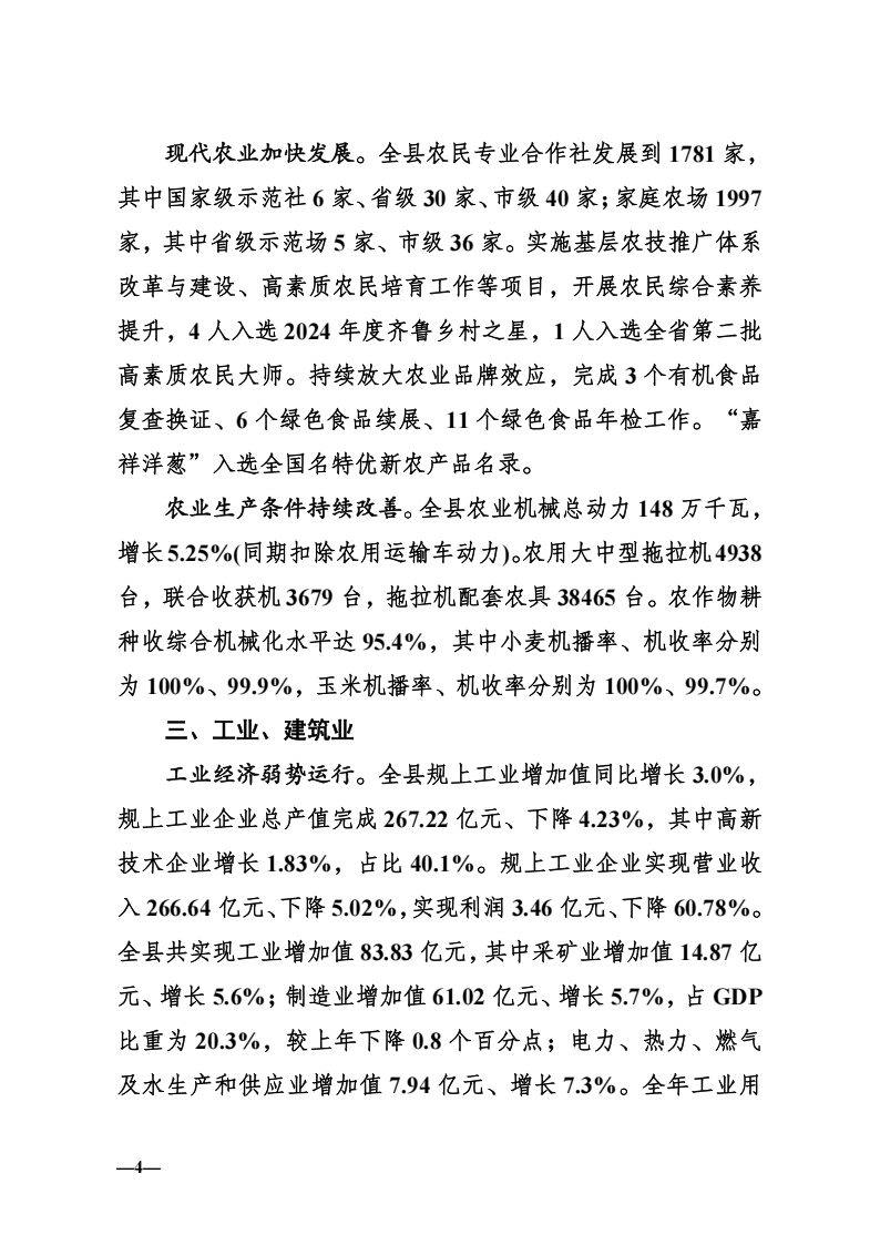 2024年濟(jì)寧市嘉祥縣人民政府國(guó)民經(jīng)濟(jì)和社會(huì)發(fā)展統(tǒng)計(jì)公報(bào)(2025年更新)