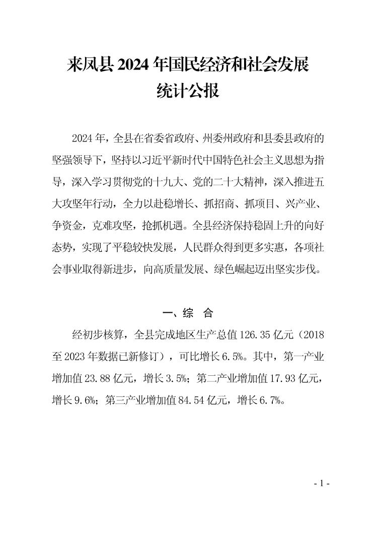 2024年恩施土家族苗族自治州來(lái)鳳縣人民政府國(guó)民經(jīng)濟(jì)和社會(huì)發(fā)展統(tǒng)計(jì)公報(bào)(2025年更新)