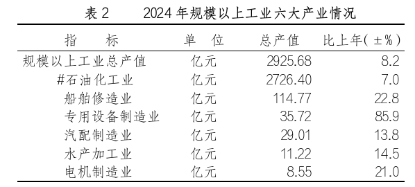 全年全縣規(guī)模以上工業(yè)總產(chǎn)值2968.27億元,比上年增長7.6%,規(guī)模以上工業(yè)增加值比上年增長9.9%。規(guī)模以上工業(yè)中,高新技術產(chǎn)業(yè)增加值增長9.8%,戰(zhàn)略性新興產(chǎn)業(yè)增加值增長66.1%,數(shù)字經(jīng)濟核心產(chǎn)業(yè)制造業(yè)增加值增長20.3%。規(guī)模以上工業(yè)企業(yè)六大主導行業(yè)實現(xiàn)總產(chǎn)值2925.68億元,比上年增長8.2%,所占比重為98.6%。其中石油化工業(yè)實現(xiàn)總產(chǎn)值2726.40億元,所占比重為91.9%。