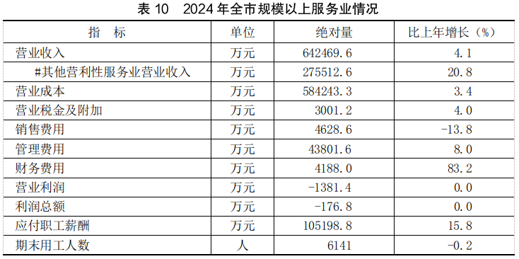 全年全市批發(fā)和零售業(yè)增加值比上年增長12.8%,交通運(yùn)輸、倉儲和郵政業(yè)增加值增長4.5%,住宿和餐飲業(yè)增加值增長6.1%,金融業(yè)增加值增長7.0%,房地產(chǎn)業(yè)增加值增長9.1%。全年規(guī)模以上服務(wù)業(yè)企業(yè)營業(yè)收入增長4.1%。