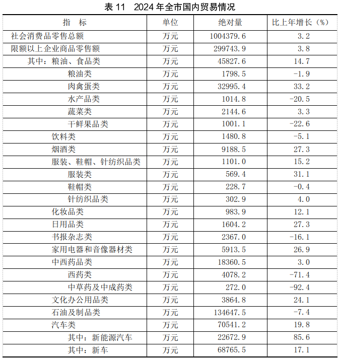 全年全市社會消費(fèi)品零售總額比上年增長3.2%。