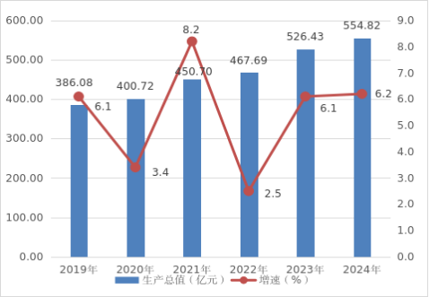 圖一???2019-2024年全市生產(chǎn)總值及增速