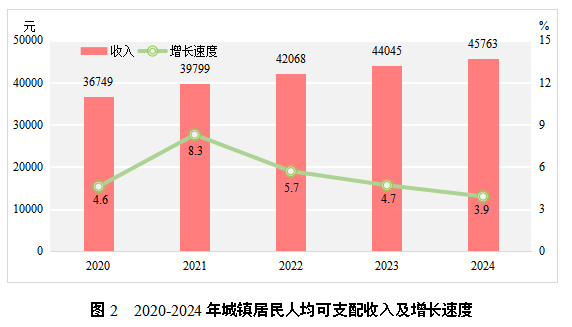 全年居民人均可支配收入36836元,比上年增長(zhǎng)4.6%。其中城鎮(zhèn)居民人均可支配收入45763元,增長(zhǎng)3.9%;農(nóng)村居民人均可支配收入24522元,增長(zhǎng)5.8%。全市居民人均消費(fèi)支出26912元,比上年增長(zhǎng)4.9%。其中城鎮(zhèn)居民人均消費(fèi)支出30923元,增長(zhǎng)5.0%;農(nóng)村居民人均消費(fèi)支出21379元,增長(zhǎng)4.3%。