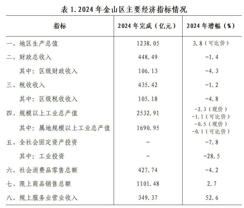 2024年上海市金山區(qū)人民政府國(guó)民經(jīng)濟(jì)和社會(huì)發(fā)展統(tǒng)計(jì)公報(bào)(2025年更新)