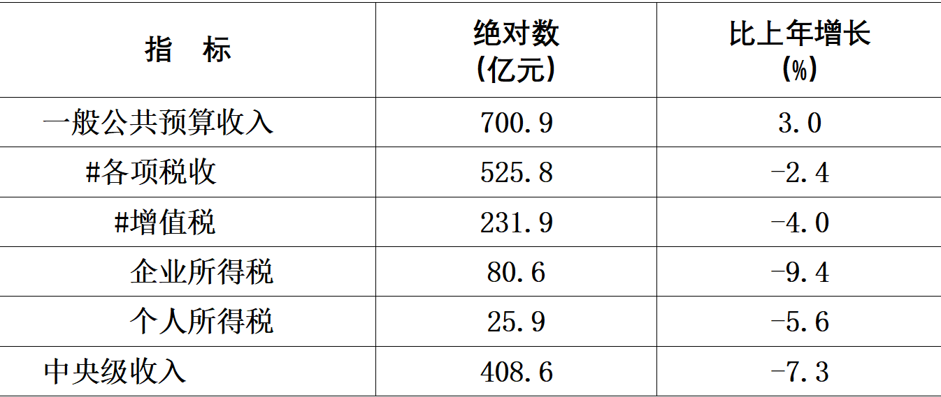財政收入保持平穩(wěn)。全年完成一般公共預(yù)算收入700.9億元,比上年增長3.0%;其中稅收收入525.8億元,下降2.4%。