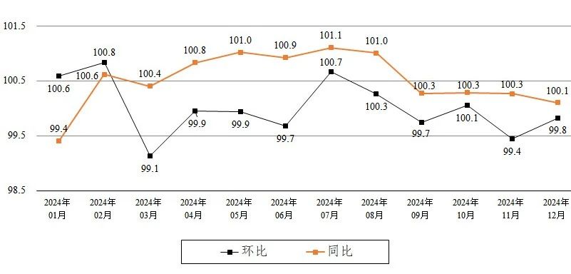 消費(fèi)價格溫和上漲。全年居民消費(fèi)價格比上年上漲0.5%。八大類商品及服務(wù)價格指數(shù)呈“五漲一平二降”。其中,其他用品和服務(wù)類、醫(yī)療保健類、衣著類、教育文化和娛樂類、生活用品及服務(wù)類價格分別上漲5.8%、3.5%、1.9%、1.4%、0.6%,食品煙酒類價格與去年同期持平,交通和通信類、居住類價格分別下降1.3%、0.1%。