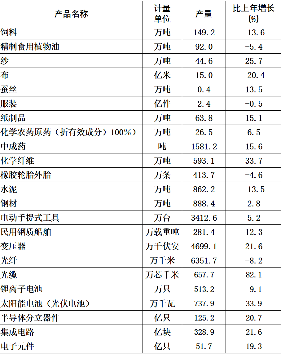 裝備制造業(yè)較快增長。全年規(guī)模以上裝備制造業(yè)增加值比上年增長9.5%。其中,專用設(shè)備制造業(yè)、汽車零部件制造業(yè)等行業(yè)增加值年內(nèi)保持高速增長態(tài)勢,分別增長14.4%、12.7%。太陽能電池、變壓器等主要產(chǎn)品產(chǎn)量分別增長33.9%、21.6%。