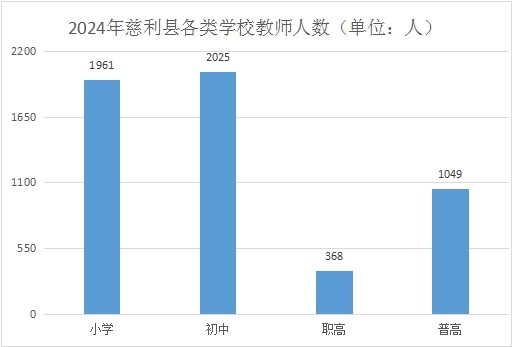 全縣共有30所小學(xué)學(xué)校(不含教學(xué)點),3所中等職業(yè)教育學(xué)校,34所初中學(xué)校,6所普通高中學(xué)校,各類民辦學(xué)校32所。擁有教師共6464人,同比下降3.6%,其中專任教師5768人,包括普高專任教師946人。農(nóng)村義務(wù)教育專任教師本科及以上學(xué)歷占比69.3%。