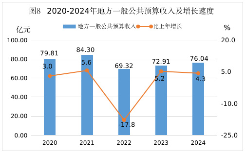 全年全市地方一般公共預(yù)算收入76.04億元,比上年增長(zhǎng)4.3%;其中,稅收收入35.24億元,下降7.7%,非稅收入40.80億元,增長(zhǎng)17.5%。全市一般公共預(yù)算支出370.69億元,增長(zhǎng)10.3%;民生支出合計(jì)275.55億元,占一般公共預(yù)算支出的比重達(dá)74.3%;其中,城鄉(xiāng)社區(qū)、節(jié)能環(huán)保、住房保障支出分別增長(zhǎng)40.7%、38.6%和36.2%。