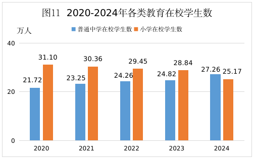 全市共有幼兒園534所,在園幼兒8.71萬(wàn)人;學(xué)前教育幼兒毛入園率為98.93%,比上年提高0.22個(gè)百分點(diǎn);小學(xué)323所,普通中學(xué)202所,其中,初級(jí)中學(xué)110所,高級(jí)中學(xué)18所,完全中學(xué)12所,一貫制學(xué)校62所(九年一貫制學(xué)校56所,十二年一貫制學(xué)校6所);小學(xué)在校學(xué)生27.26萬(wàn)人,學(xué)齡人口入學(xué)率達(dá)100%;初中在校學(xué)生16.11萬(wàn)人,初中學(xué)齡人口入學(xué)率100%;高中在校學(xué)生9.06萬(wàn)人,比上年增加0.52萬(wàn)人,高中階段教育毛入學(xué)率97.67%,提高0.07個(gè)百分點(diǎn)。本市各類(lèi)中等職業(yè)教育學(xué)校15所,在校生3.9萬(wàn)人;技工學(xué)校3所,在校生1.05萬(wàn)人。普通高等教育院校2所,在校生2.02萬(wàn)人。