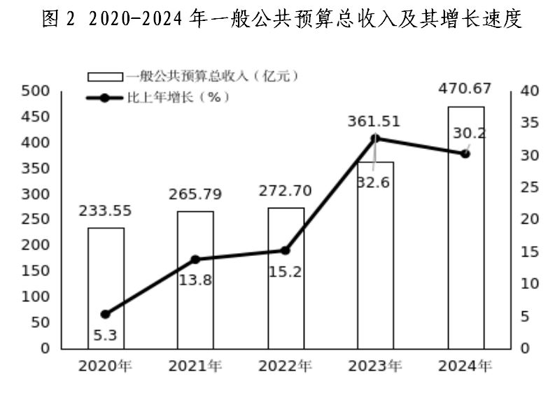 全年一般公共預(yù)算總收入(不含基金收入)470.67億元,增長(zhǎng)30.2%,其中,地方一般公共預(yù)算收入254.60億元,增長(zhǎng)21.3%。全市稅收總收入412.21億元,增長(zhǎng)37.8%,占一般公共預(yù)算總收入的比重為87.6%;地方級(jí)稅收收入196.15億元,增長(zhǎng)32.9%,占地方一般公共預(yù)算收入的比重為77.0%。一般公共預(yù)算支出451.63億元,增長(zhǎng)11.5%。其中,民生支出366.78億元,增長(zhǎng)10.8%,占一般公共預(yù)算支出的比重為81.2%。
