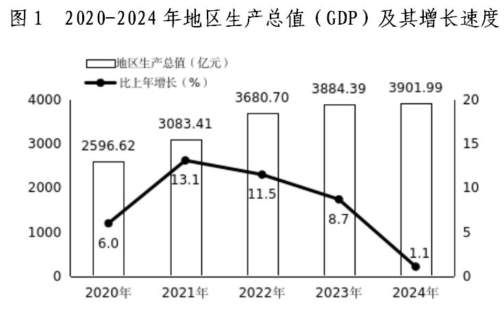 初步核算,全年地區(qū)生產(chǎn)總值3901.99億元,比上年增長(zhǎng)1.1%。其中,第一產(chǎn)業(yè)增加值415.92億元,增長(zhǎng)3.7%;第二產(chǎn)業(yè)增加值2041.40億元,增長(zhǎng)0.2%;第三產(chǎn)業(yè)增加值1444.67億元,增長(zhǎng)1.6%。第一產(chǎn)業(yè)增加值占地區(qū)生產(chǎn)總值的比重為10.7%,第二產(chǎn)業(yè)增加值比重為52.3%,第三產(chǎn)業(yè)增加值比重為37.0%。全年人均地區(qū)生產(chǎn)總值達(dá)12.34萬元,增長(zhǎng)0.9%。