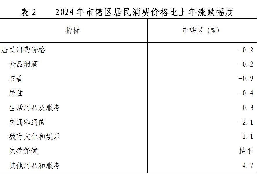 全年市轄區(qū)居民消費(fèi)價(jià)格比上年下降0.2%。