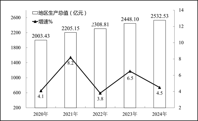 圖1??2020-2024年地區(qū)生產(chǎn)總值及其增長速度