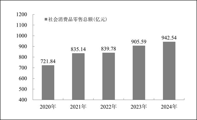 全年社會消費品零售總額942.54億元,比上年增長4.1%。